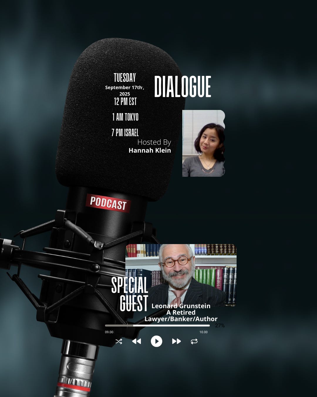 I'll be posting my podcast with a retired lawyer, banker, and author of "Because It's Just And Right," Leonard Grunstein. The topic is special, as we're going to talk about Rosh Hashanah, Yom Kippur, Jerusalem, and other topics with my guest.