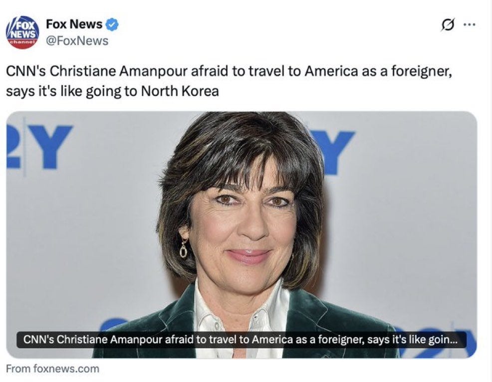 Christiane Amanpour exemplified going to the United States as going to North Korea.