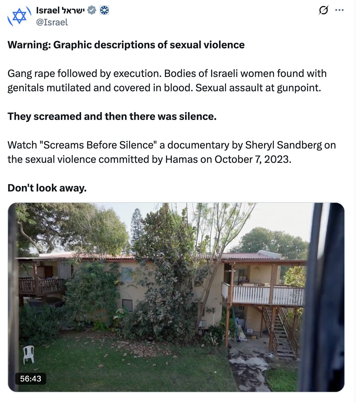 Japanese media have been advertising Qatar as a wonderful and compassionate moderator for Israel to talk with Hamas over the hostages held in Gaza. Please never look away. Please don't. And, please watch this documentary.